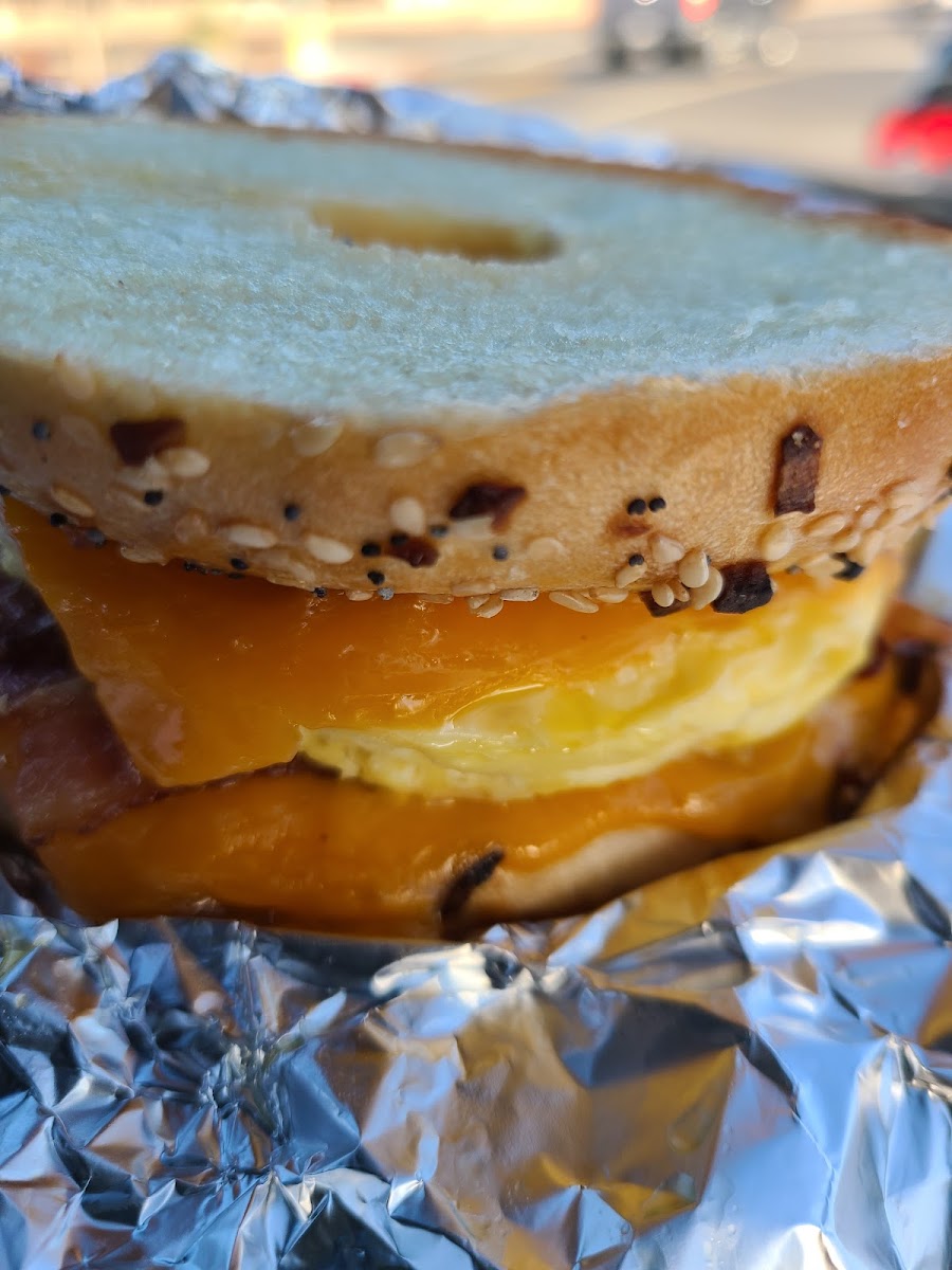 This place is so good, everything you could hope for and more on a road trip coffee stop. The inside out bagel sandwiches are incredible (the innovation!), coffee great, smoothies great, and the employees are always so friendly and welcoming. I make a point to stop here every time I drive through.