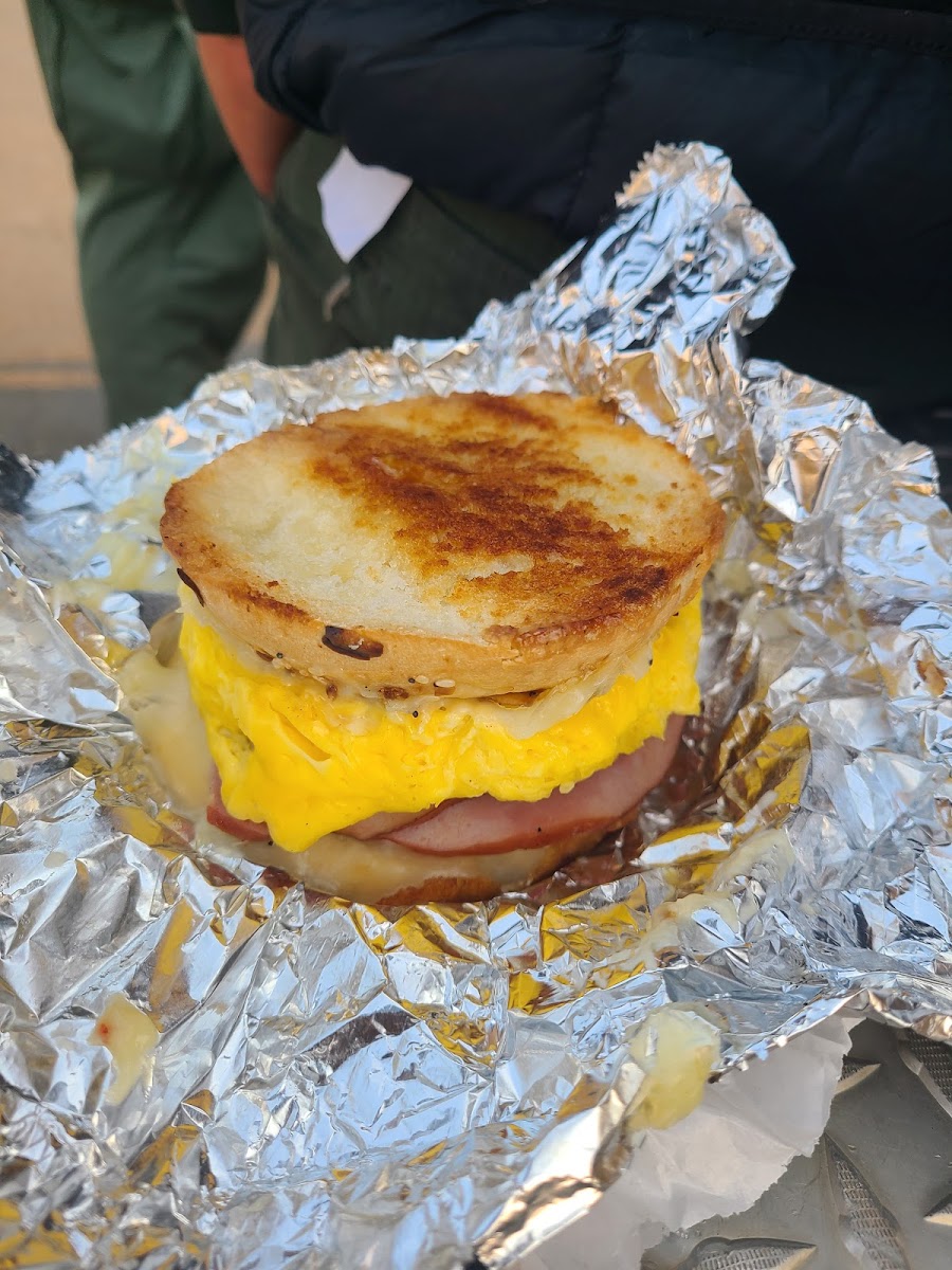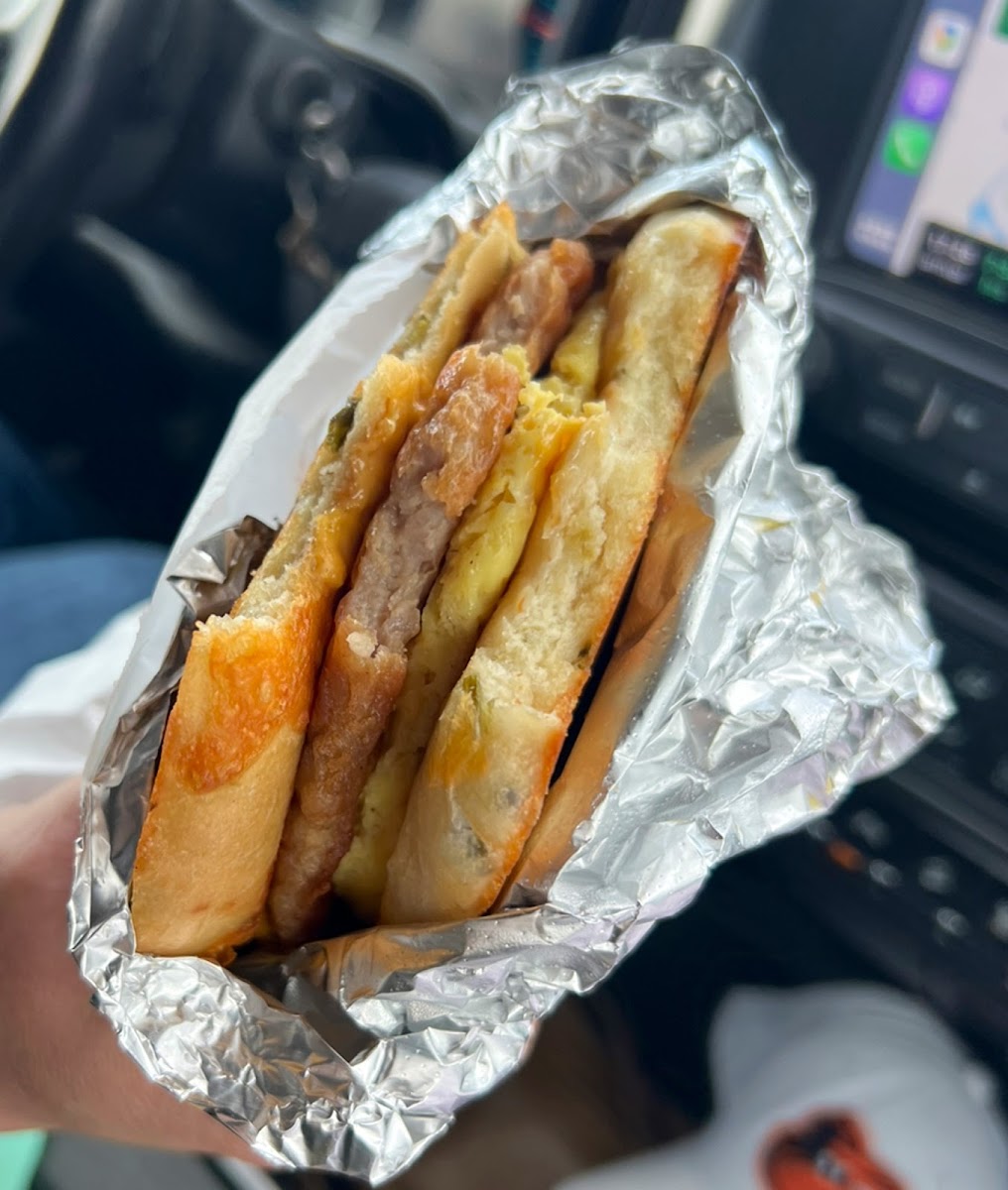 We had a sausage and egg bagel and Dark chocolate mocha. Both were very good. Bagel is huge, my husband and I shared. Coffee is not bitter. We will drop by again when we are in town.